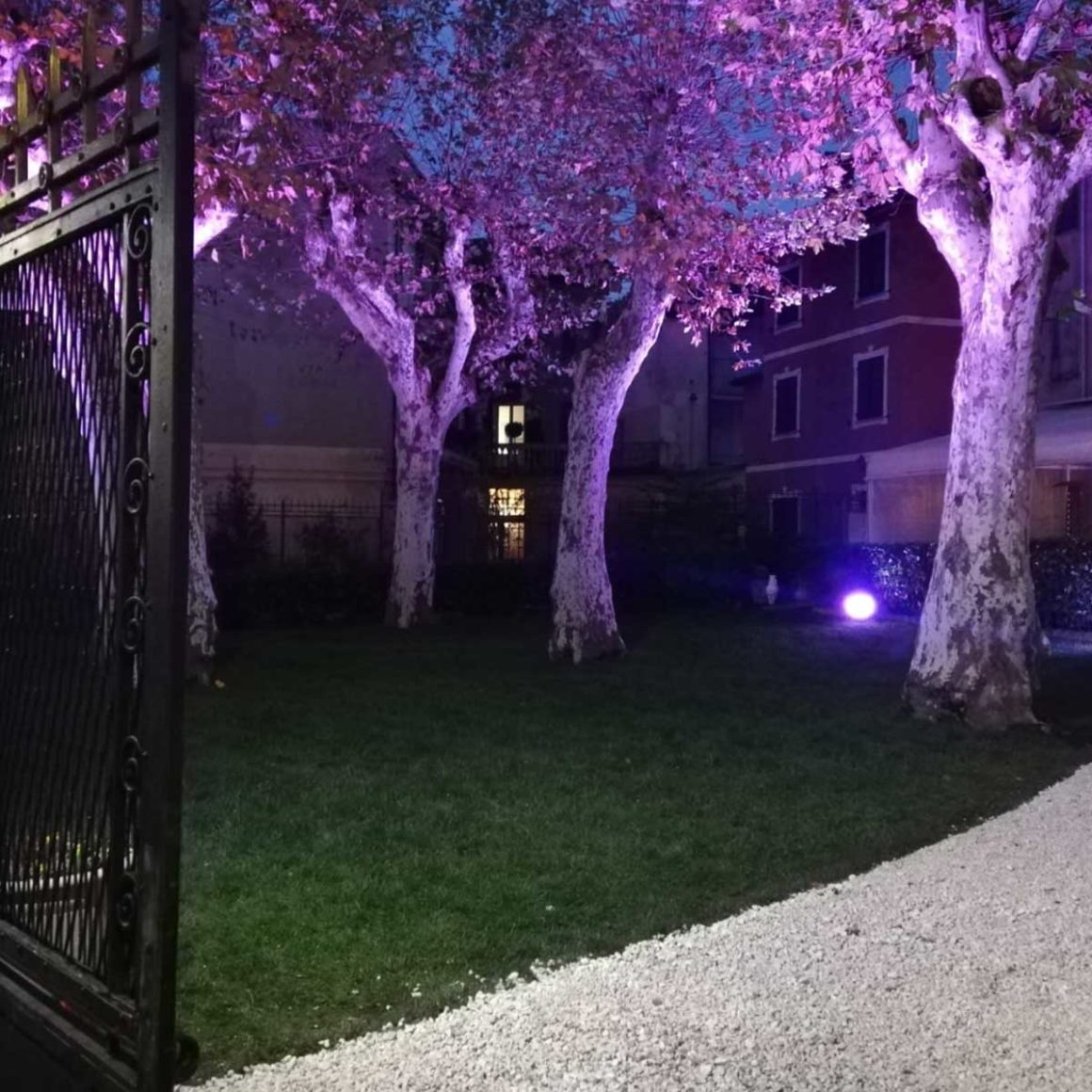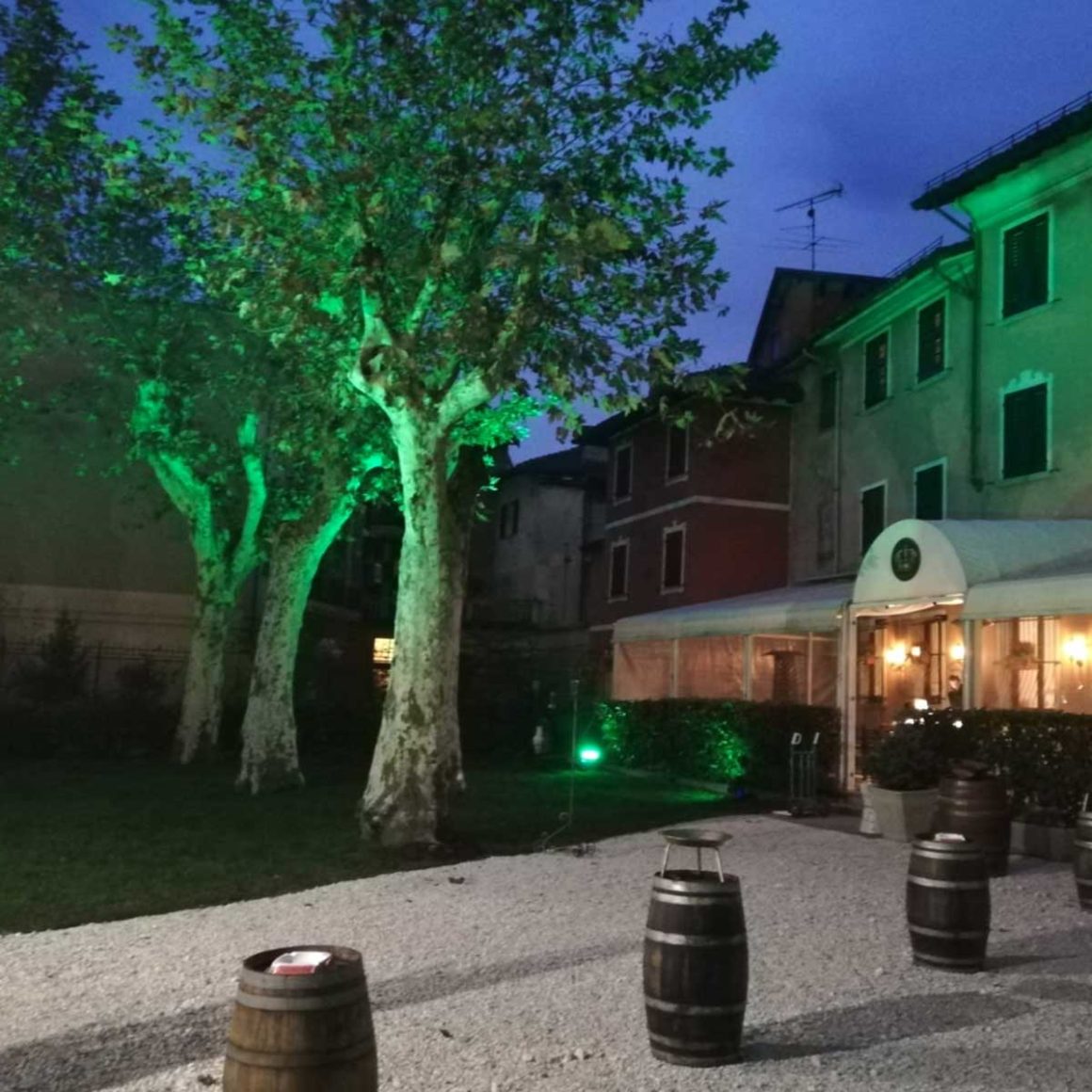 Dark Light si è occupata dell’illuminazione esterna del locale; un’illuminazione temporanea con apparecchiature EMERALD RGBW per il periodo di apertura ha lasciato spazio a quella permanente realizzata con incassi a terra TOMLED9 e TOMLED3 monocromatici.