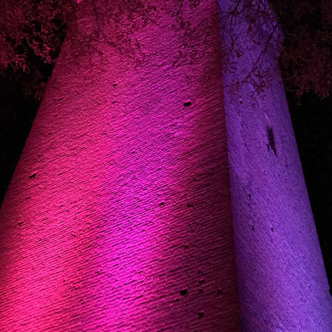 Sono stati utilizzati 8 proiettori a LED EMERALD in configurazione RGBW da 100 l’uno di Potenza, 2 per ogni lato della Torre; l’ottica ultra-Spot ha permesso di arrivare ad illuminare perfettamente la cima della torre, creando un gioco di luci e ombre che esaltano l’altezza della struttura.